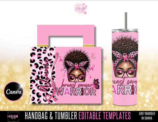 Breast Cancer Warrior Handbag Box & Tumbler Canva Editable Template (Digital Product)