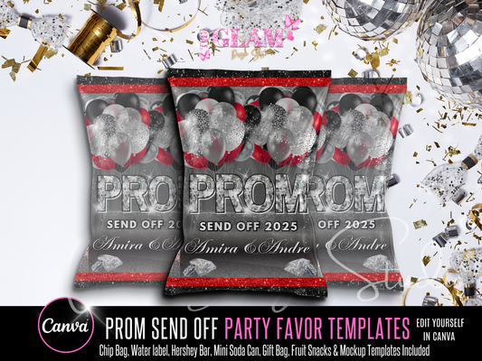 Chip Bag & Water Label Prom Send Off Party Favor Bundle Editable Canva Templates