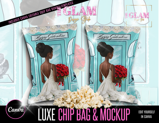 Luxe Valentine Chip Bag Template + Mockup | Canva Editable | Glam Design