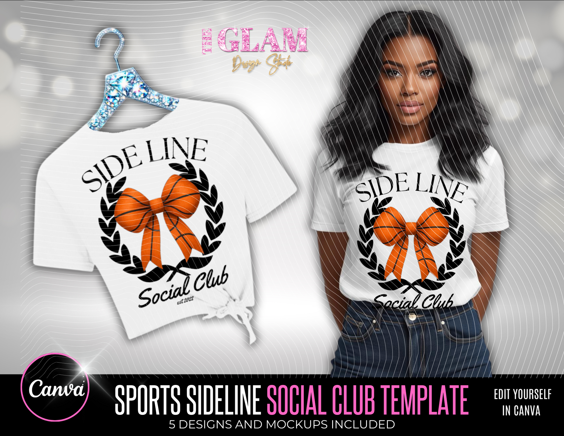 Side Line Social Club Canva Editable Templates- Glam Sports Mom T-Shirt Designs